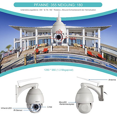 1. Installazione super facile e veloce. Rapida configurazione del WIFI tramite la App "Sricam” (lingua italiana non garantita) tramite smartphone iPhone o Android. Consente tecnologie P2P, PnP, senza configurazione di inoltro di porte. Manuale in spagnolo e inglese.