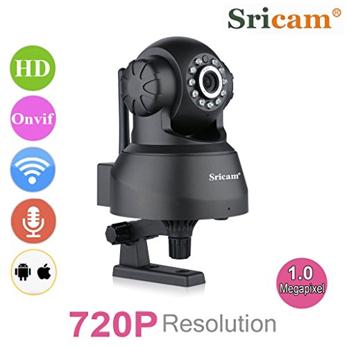 Sricam SP012 Telecamera Ip di Sorveglianza (720p, Wifi, Onvif, P2P, h. 264, Coms, IR-LED, CCTV, TF, senza connessione del PC, tutte le funzioni di APP, per sicurezza