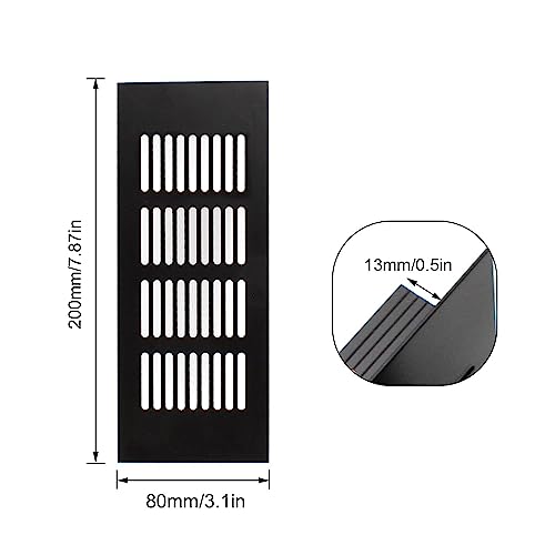 SRJQXH 2 Pezzi Griglia di Ventilazione, Lungo 200 mm Coperchio di Sfiato, Nero Alluminio Griglia di Ventilazione Rettangolare, Utilizzato per la Ventilazione di Armadi e Guardaroba