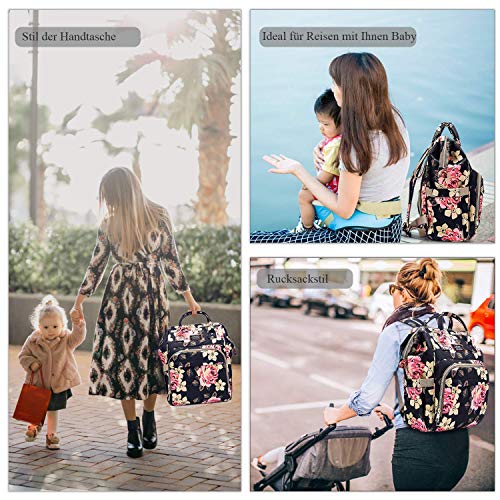 Srotek Borsa per pannolini, zaino floreale, borsa per per pannolini di neonati, resistente all'acqua con porta bottiglia d'acqua termico/fasciatoio per donne/ragazze/mamma (motivo floreale)