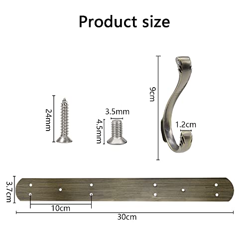 [Dimensione]: La lunghezza totale è 30cm. La larghezza è di 3.7cm. La spaziatura di ciascun gancio è di 10 cm. Questo gancio può essere caricato fino a 10kg.