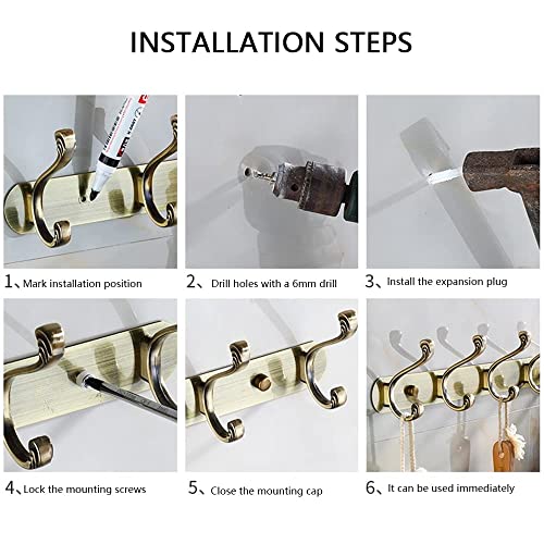 [Installazione conveniente]: Questo pratico gancio da parete è facile da installare. Dovrai prima completare i quattro ganci, quindi installare il gancio da parete, che può essere fissato al muro utilizzando tappi a vite, viti e tasselli di gomma.
