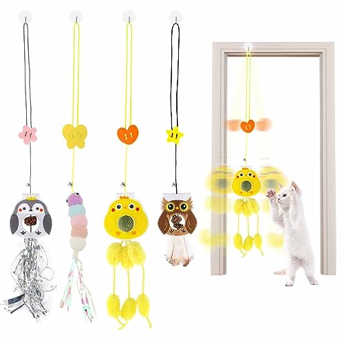 SRunDe 4 Pezzi Giocattoli per Gatti da Appendere Giochi per Gatti Appeso alla Porta con Erba Gatta Cordino Elastico Regolabile Giochi Gatti per Gatti per Caccia Esercizi