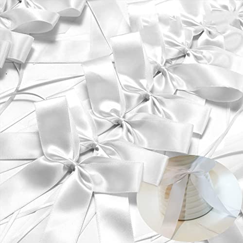 Srup 50 PCS Fiocchi in Raso con Colore Bianco Cuori, Fiocchi Decorativi per Antenna, Fiocchi Matrimonio Bianchi, per Matrimonio, Matrimonio, Auto, Regalo, Decorazione per la Casa