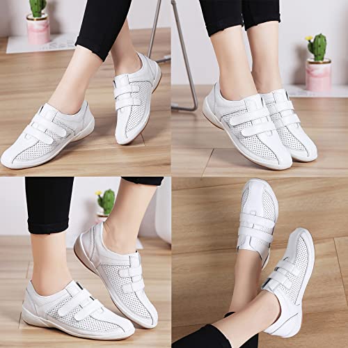 SRUQ Sneakers Scarpe Casual Donna in Pelle Classico Leggero Loafers Scarpe da Passeggio con Chiusura Lampo o Chiusura a Strappo (Bianco, Numeric_35)