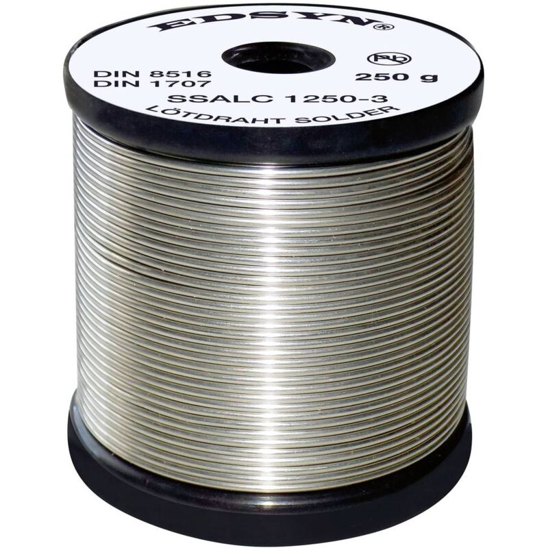 Dettagli tecnici Tipo prodotto Stagno senza piombo Edsyn SSALC1250-3 filo di saldatura senza piombo con rame stagno-argento, versione low silver, agente di flusso NO-CLEAN Con anima di fluido continua, con fluido attivo Il fratello piccolo del noto filo di saldatura SSAC con agente di flusso NO secondo F-SW32 NO CLEAN - Flussante per una buona fluidità La doppia percentuale di fluido aiuta anche in caso di saldature con grandi strati di ossigeno e riduce i tempi di saldatura Adatto anche per componenti sporchi Sn99 Ag0,3 Cu0,7 con F-SW 32 Si lavora più facilmente grazie alla bassa formazione delle sfere di saldatura. La percentuale di argento consente un facile lavoro su componenti SMD La percentuale di rame aiuta ulteriormente con superfici di rame aperte Minore percentuale d'argento = variante low cost del noto SSAC - Filo di saldatura 3 metalli semplificano il lavoro senza piombo Punto di fusione: Solido: 216°C Liquido: 227°C Punti di forza e dettagli Sn99 Ag0,3 Cu0,7 con F-SW 32