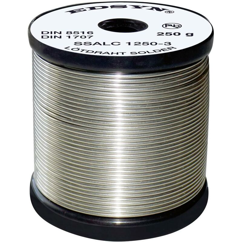 Dettagli tecnici Tipo prodotto Stagno senza piombo EDSYN SSALC5250-3 filo di saldatura senza piombo con stagno argento-rame, versione low silver, NO-CLEAN-flussante Con il anime di flussante, con Più piccolo del famoso lotdrahtes SSAC Bruder con flussante no secondo F-SW32 Flussante NO CLEAN - per una buona fluidità Doppia Percentuale di flussante aiuta anche in caso di saldature con grandi e riduce i residui di ossido Lotzeiten Anche in caso di adatto a componenti sporchi Sn99 Ag0,3 Cu 0,7 con F-SW 32 Si lavora più facilmente, poiché bassa formazione delle sfere Percentuale di argento consente un semplice lavorare su componenti SMD Percentuale di rame aiuta a superfici di rame aperte avanti Percentuale di minore argento = variante low-cost del famoso SSAC - Lotdrahtes 3 metalli semplificano la lavorare senza piombo Punto di fusione: Solido: 216 °C Liquido: 227 °C Testo tradotto automaticamente. Punti di forza e dettagli Sn99 Ag0,3 Cu 0,7 con F-SW 32 con doppio Percentuale di