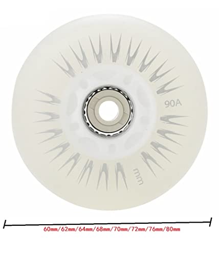 SSCYHT Ruote per Pattini in Linea 4 Pezzi, con Ruote per Pattini a LED Flash Ruota di Ricambio 60mm/62mm/64mm/68mm/70mm/72mm/76mm/80mm Rulli in Linea per Bambini e Ragazzi,Bianca,60mm