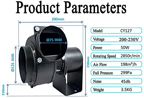SSCYHT Ventilatore centrifugo ad Alta Temperatura ad Alta Temperatura con Isolamento Termico ad Ala Piccola Ventilatore a tiraggio indotto Caldaia da 50 W ad Alta Temperatura