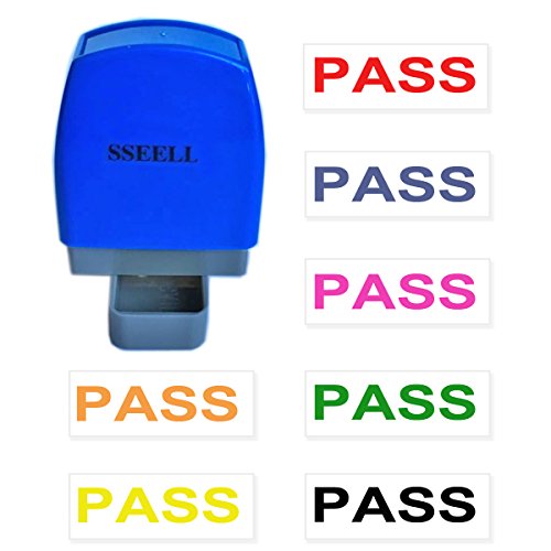 SSEELL - Timbro rapido autoinchiostrante, preinchiostrato e ricaricabile, in gomma, con scritta in inglese "Pass", ideale per scuola, lavoro e ufficio, molti colori disponibili