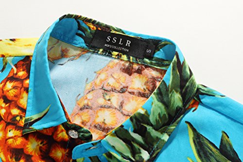SSLR - Camicia hawaiana a maniche corte in cotone, da uomo - Blu - L