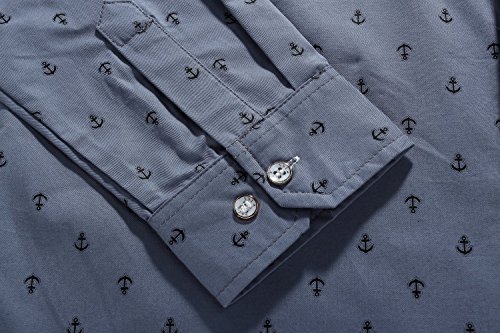 SSLR Uomo Camicie da Manica Lunga Button Down Cotone Stampato Ancora