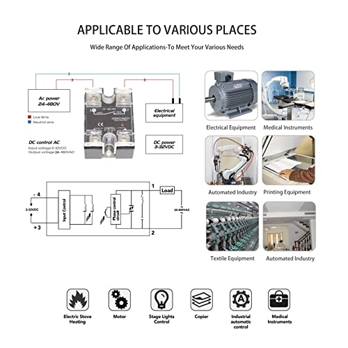SSR-10DA 25A 40A 60A 80A 100A 120A Zero Crossing DC/AC 24-480VAC Relè a Stato Solido Modulo for Protezione relè (Size: SSR-25DA)