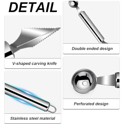 SSRDFU 2 pcs Cucchiaio Per Palline Di Melone - Cucchiaio Per Scavare La Frutta Scavino per Palline Melone, Cucchiaio per Gelato In Acciaio Inossidabile Doppia Faccia Baller Melone Cucchiaio