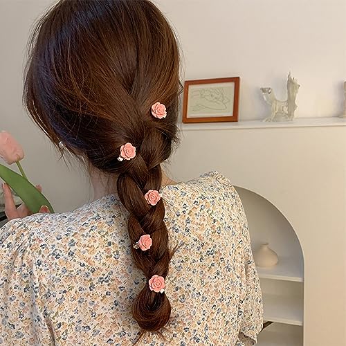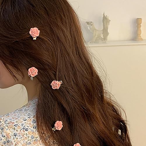 SSRDFU 10 PCS Forcine Capelli Sposa - Piccoli Fiori Accessori Capelli Cerimonia Sposa per Le Donne Fermaglio Capelli Sposa con Rosa Vari Acconciatura, Mini Fermagli per Capelli, Rosa