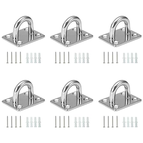 SSRDFU 6 Pezzi Gancio per Piastra Oculare - 6 Ganci da soffitto Quadrati, in Acciaio Inox 304, con 24 Viti per Esercizi di Yoga e Allenamento