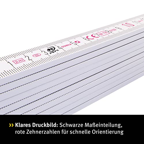 scala metrica cm/mm su entrambi i bordi del metro con decine rosse per una lettura rapida