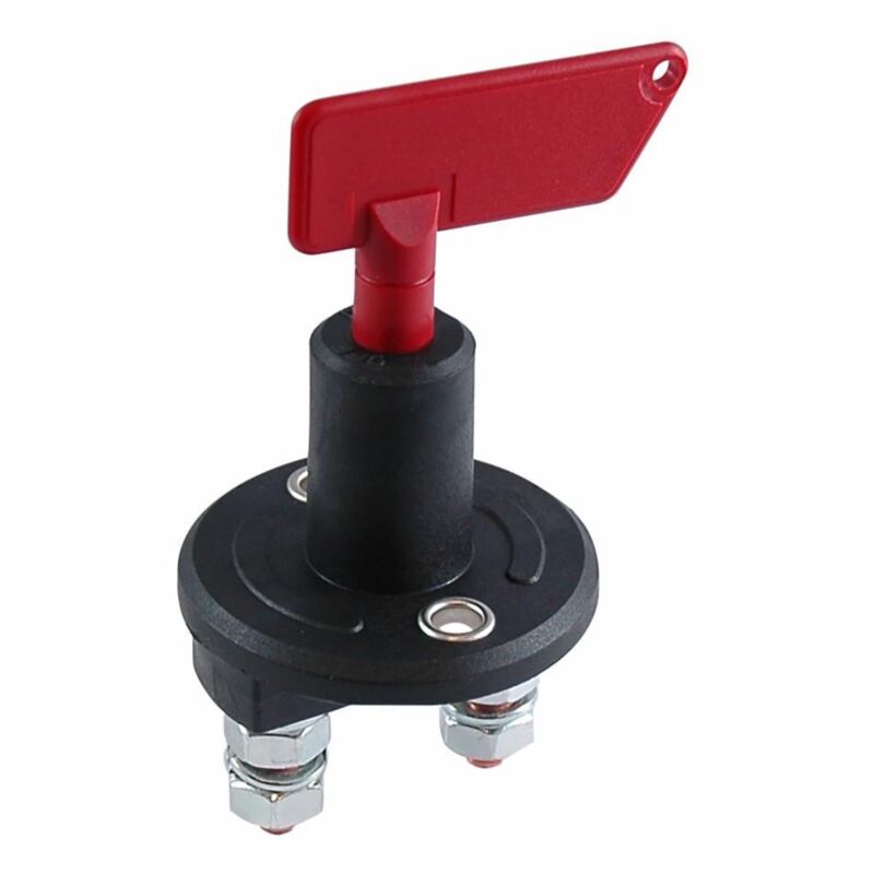 INTERRUTTORE STACCABATTERIA 100A Interruttore stacca batteria unipolare con leva estraibile. Caratteristiche: Volt: 12 / 24 V. Spunto: 500 Amp x 5 . Ampere: 100 Amp.