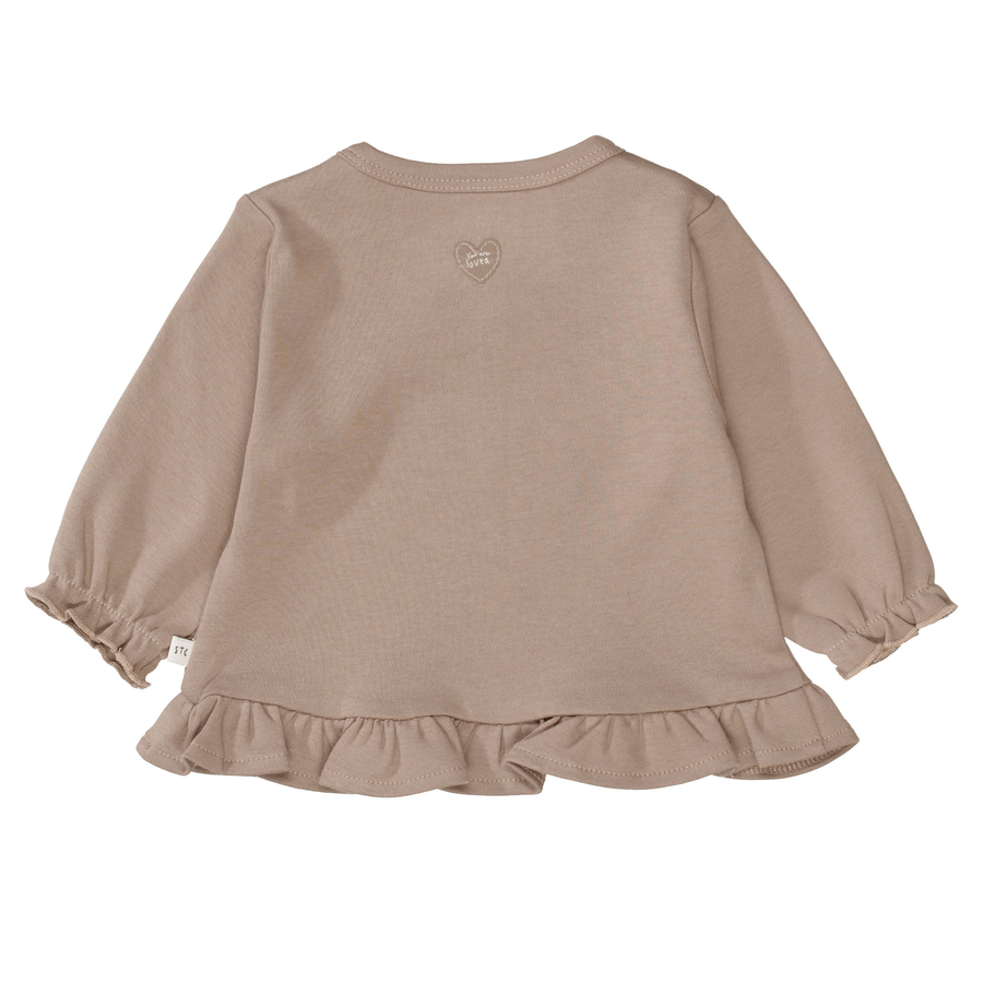 Dettagli prodotto: Camicia a maniche lunghe con grafica print Scollo rotondo Taglio Pe plum con balza sull'orlo Bottoni a pressione sulla spalla Polsini con dettagli di volant Materiale e istruzioni per la cura: Materiale: 100% cotone biologico Lavabile a 30° C Non candeggiare Non lavare a secco