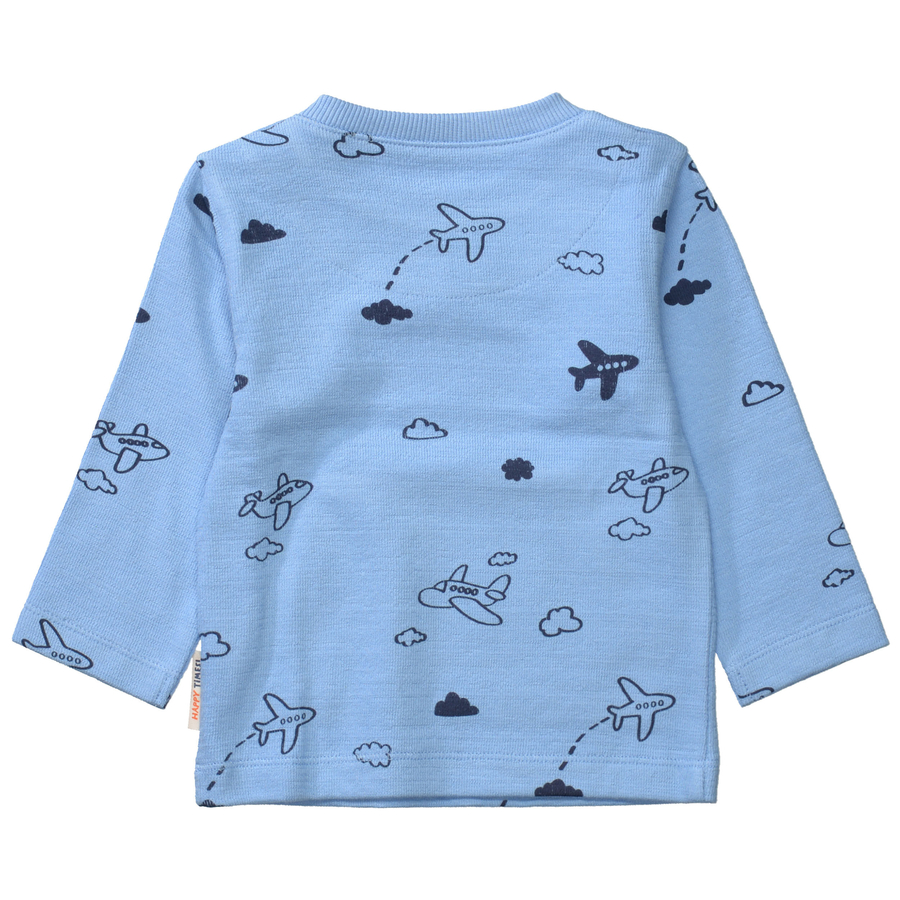 Dettagli del prodotto: Camicia a maniche lunghe con aeroplano - Allover - Print Con tasca a canguro tono su tono Con bottoni a pressione sulla spalla Collo rotondo Combinazione versatile Materiale e cura: Materiale: 100 % cotone Lavabile a 30° C Non lavare a secco Non candeggiare