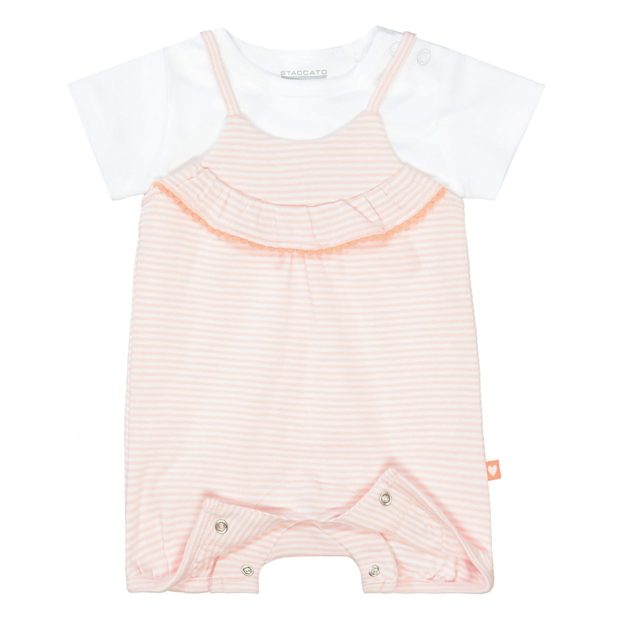 La collezione di moda per bambini di STACCATO offre molti dettagli pratici e convince con grandi vestibilità con s colorate e insolite Print . La collezione di tendenza per neonati e bambini si concentra sulla funzionalità adatta ai bambini. Con tanto amore per i dettagli uniti STACCATO Materiali, qualità e adattabilità. Colori alla moda, grandi tessuti e un look sfacciato: questo è STACCATO Moda per bambini e neonati! Questa simpatica tutina annuncia la stagione estiva. Con le sue gambe corte e la maglietta separata, la tutina è un must assoluto per le calde giornate estive. Le chiusure a scatto sia sul retro che sul cucito lo rendono facile da indossare e da togliere. dettagli del prodotto: Materiale: 100% cotone biologico Lavabile fino a 40 °C Striscia- Design