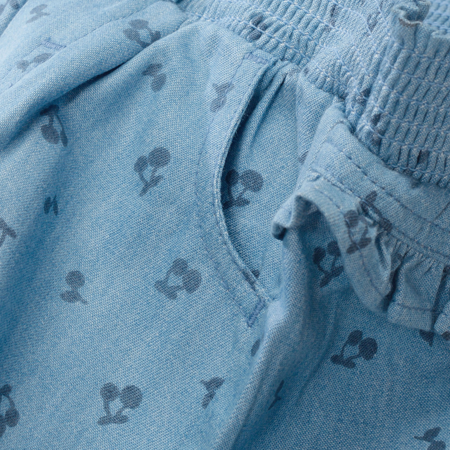 Dettagli prodotto: Pantaloni con Allover -ciliegie- Print Due tasche Con balze e fiocco decorativo Con elastico in vita Combinazione versatile Materiale e istruzioni per la cura: 100 % cotone Lavabile a 30° C Non candeggiare Non lavare a secco