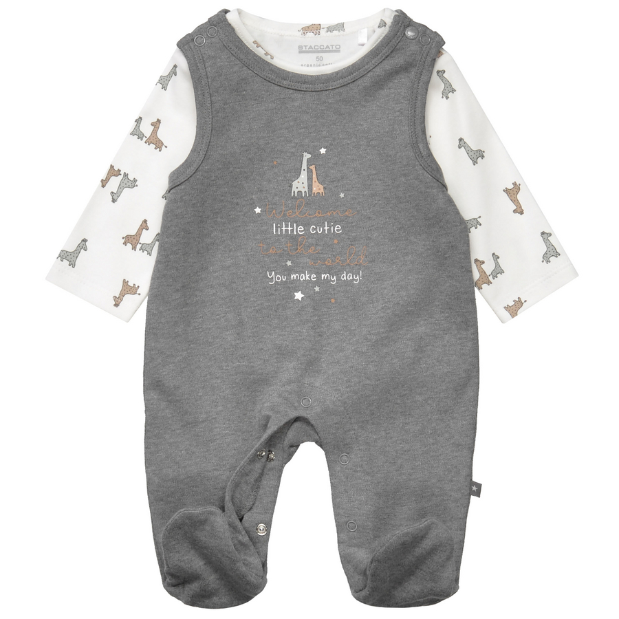 Dettagli del prodotto: Combinazione di camicia a maniche lunghe e tutina Con giraffa Print e scritte Collo rotondo Bottoni a pressione sulla spalla e sul cavallo Materiale e istruzioni per la cura: 100 % cotone biologico Lavabile a 30° C Non candeggiare Non lavare a secco