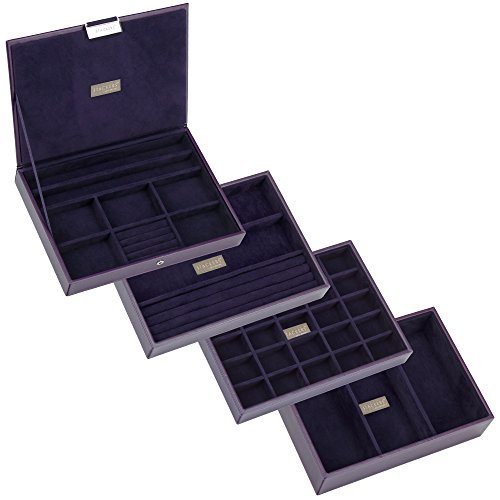 STACKERS Set of 4 ‘Classic Size' - Purple Stacker Set of 4 Jewellery Box with Purple Velvet Finish Lining