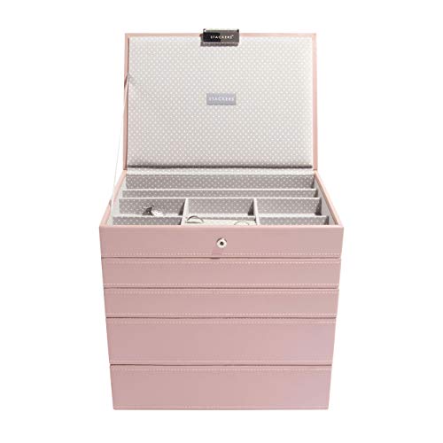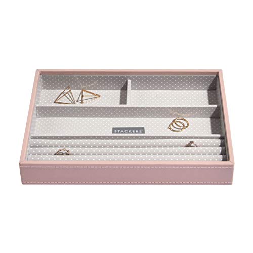 STACKERS Set of 5 ‘Classic Size' - Soft Pink Stacker Set of 5 Jewellery Box with Grey Spotted Lining.