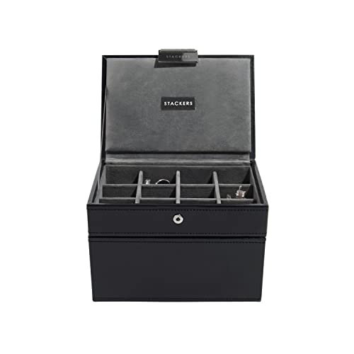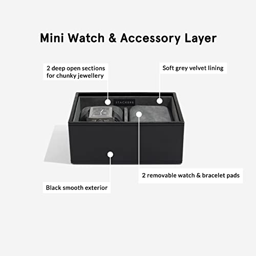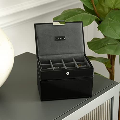 STACKERS - Men's Set of 2 Executive Black Mini Lidded And Watch Stacker with Grey Velvet Finish Lining