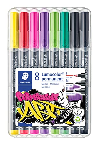 STAEDTLER 31-S WP8 - Pennarelli permanenti Lumocolor, confezione da 8 colori assortiti e larghezze di linea assortite