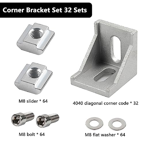 【Facile da usare】: facile da usare, può essere facilmente fissato con bulloni e dadi (compresi bulloni e dadi).32 x giunto d'angolo 40x40, 64 x vite chiave a brugola M8, 64 x rondella, 64 x dado a T M8. Materiale di montaggio Supporto a parete angolare Materiale di montaggio per profilo in alluminio 4040.