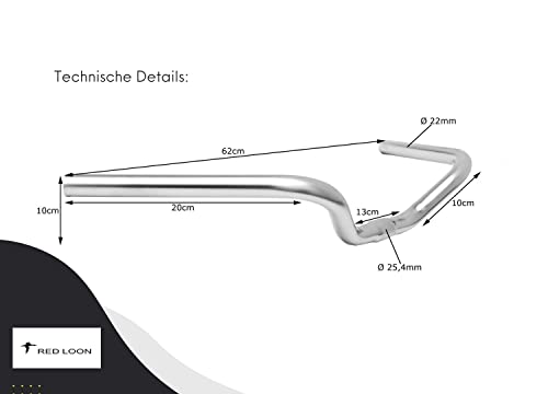 Il manubrio retrò per bicicletta ha un diametro di 25,4 mm sul morsetto del manubrio (al centro). Su entrambi i lati si possono fissare perfettamente maniglie e freni standard. Il manubrio è piegato due volte (verso l'alto e verso l'indietro) e garantisce quindi una posizione di seduta eretta.
