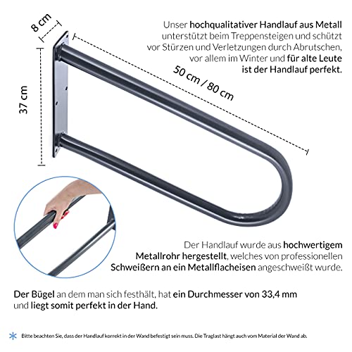Funzione: il nostro corrimano in metallo di alta qualità ti supporta quando sali le scale e protegge da cadute e lesioni causate da scivolamenti, soprattutto in inverno e per le persone anziane, il corrimano è perfetto.