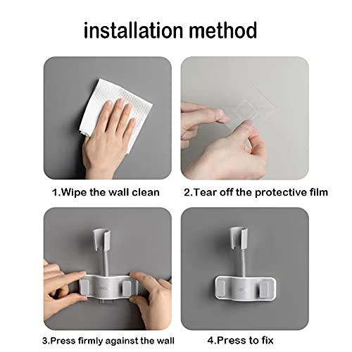 【Multifunzione】 La staffa per doccia ha un'adesione eccellente, nessuna perforazione, non danneggerà il muro, pasta forte non facile da staccare, dotata di 2 ganci per appendere asciugamani, spazzole da doccia e altri oggetti, forte capacità di carico di 5 kg, lunga stabilità duratura