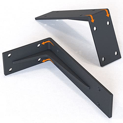 Staffa per Mensola Pesanti Nera Carica 400kg Supporto Industriale a Forma di L Reggimensole Galleggianti in Metallo Ferro, per Interni, Esterni, 2 Pezzi (150 × 100mm)