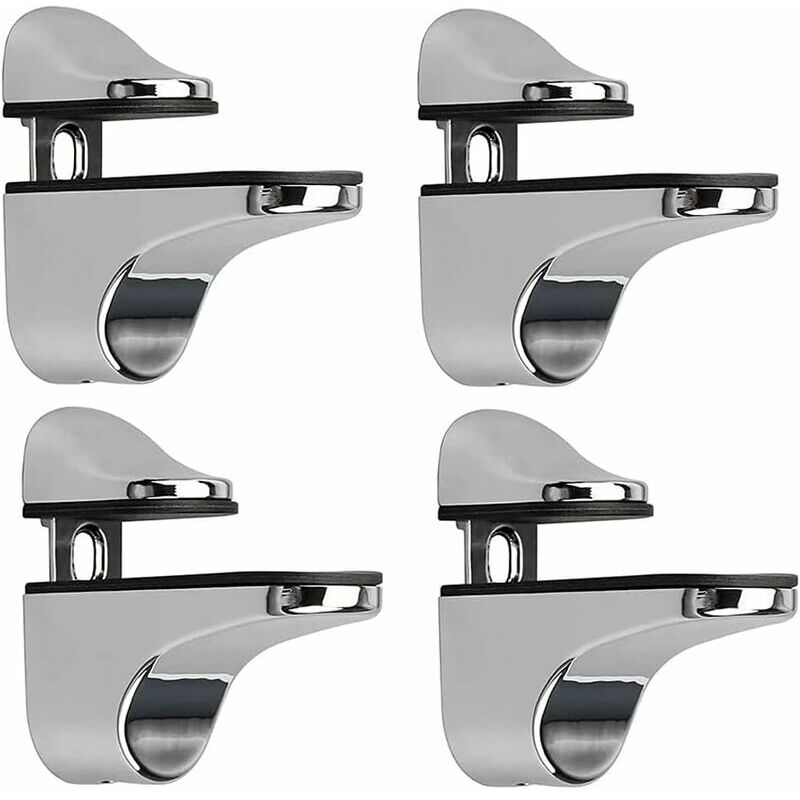 Materiale di alta qualità - Staffa per mensola in vetro regolabile Costruzione solida in lega di zinco di alta qualità, che garantisce qualità e longevità nell'umidità. Impressionante trattamento superficiale lucido, tocco confortevole. Facile da installare: staffe per mensola regolabili sulla parete, quindi basta regolare lo spazio tra le ganasce di serraggio e fissarlo alla parete. mensola con le viti nella parte inferiore la staffa. Design raffinato e durevole: aumenta il design della guarnizione nera per fissare il vetro e aumenta l'attrito con il vetro per evitare che il vetro cada, addensare il materiale e migliorare la capacità portante. Applicazione: progettata per assi di vetro o legno su scaffali per libri, espositori, mensole da giardino, staffe da parete esterne e mensole in vetro, ecc. Descrizione del prodotto: come installare 1 .Scegliere la posizione e praticare i fori. 2.Fissare la parte superiore del morsetto per vetro con le viti. 3.Installare la parte inferiore del