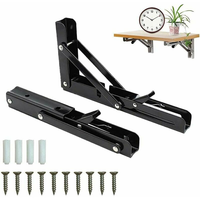 una delle caratteristiche perfette della staffa pieghevole. Le staffe pieghevoli scattano in posizione con un angolo di 90 gradi. Se vuoi piegare i tavoli dal muro, basta premere il braccio di rilascio. Il supporto pieghevole richiede solo una superficie di montaggio e occupa pochissimo spazio. 【Grande capacità di carico:】 Stabile e pratico : Dimensioni: L x A = 20 x 11,5 cm (8 x 4,5 pollici), larghezza: 22 mm (8 pollici). Contiene hardware di montaggio appropriato, viti e tubi di espansione in acciaio