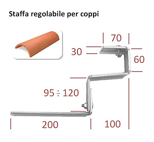 STAFFA REGOLABILE PER COPPI in ferro zincato. Supporto per moduli fotovoltaici per tetti con coppi. Altezza regolabile