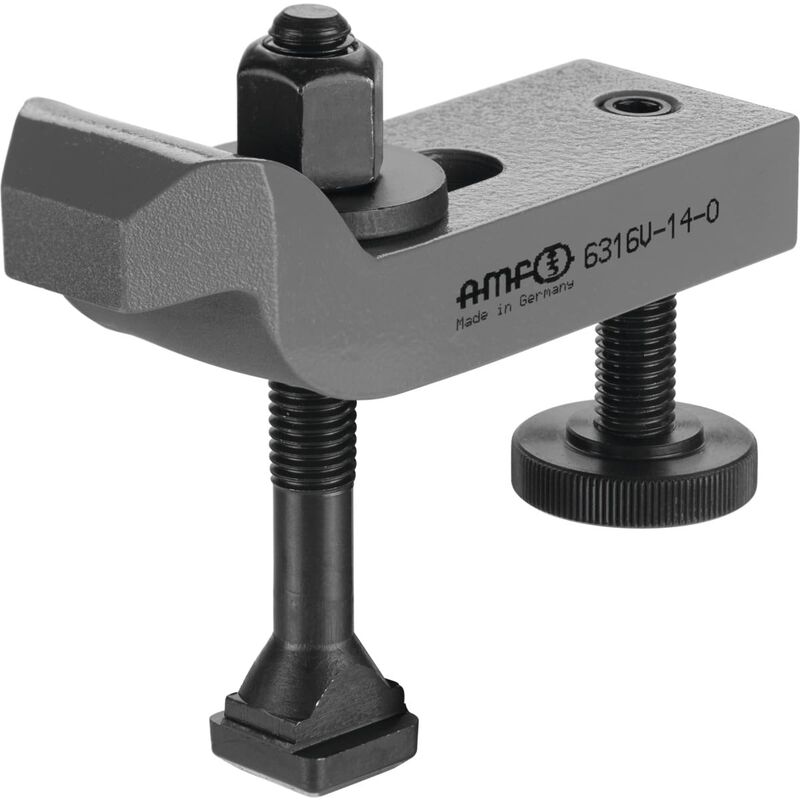 DescrizioneEsecuzione:Staffe di bloccaggio verniciate. Altezza di serraggio regolabile in continuo con una vite di spinta (senza leva di serraggio).Materiale:Acciaio bonificato, resistenza viti 8.8. o 10.9 (a seconda della dimensione).Fornitura:Con vite di regolazione e vite per cave a T a norma DIN 787 (n. art. 375300).Dati tecnici Modello 6316V Larghezza scanalatura a 18 mm Altezza di serraggio h 36 mm - 69 mm Vite per cave a T a norma DIN 787, n. art. 375300 Dim. 1816125 Lungh. L 160 mm Larghezza B 18 mm Altezza H 25 mm Distanza e punta-scanalatura 51,5 mm Lunghezza scanalatura f 50 mm Tipo di prodotto Staffe di bloccaggio Codice articolo 370720 18 EAN / GTIN 4020772071318 Codice del produttore 71316