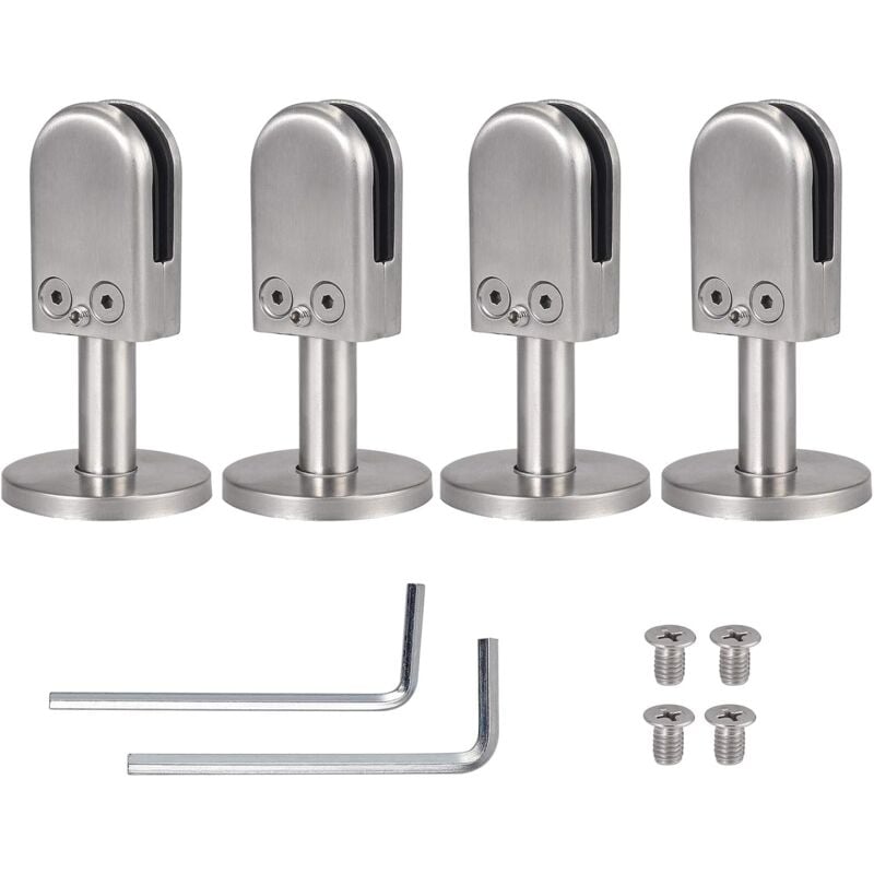 Fascette per vetro: realizzate in acciaio inossidabile 304, dimensioni 54 x 33 x 18 mm (A x L x T/P), adatte per vetro da 6-8 mm Facile da installare: viene fornito con uno stantuffo esagonale, è facile allentare o serrare le viti. Cuscinetto di carico: dotato di una robusta barra di supporto, migliore effetto del carico. Regolabile: con gli strati di gomma e il vite di microregolazione, è adatta per vetri di spessore 6-8 mm. Sicuro: la guarnizione in gomma può essere fissata in modo stabile e sicuro sul vetro, ideale per fissare il vetro a balaustre, scale, ringhiere, ecc.< /li>