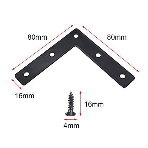 Staffe Angolari 90 Gradi Nera,Staffa a L in Acciaio Nera da 20 Pezzi,80x80mm, Staffa Angolare in Metallo a Staffa a L a Forma di, con Viti