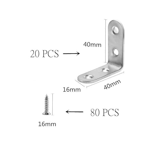 Quantità: 20 pezzi Staffa angolare in metallo affilata a L a 90 gradi con 80 viti.
