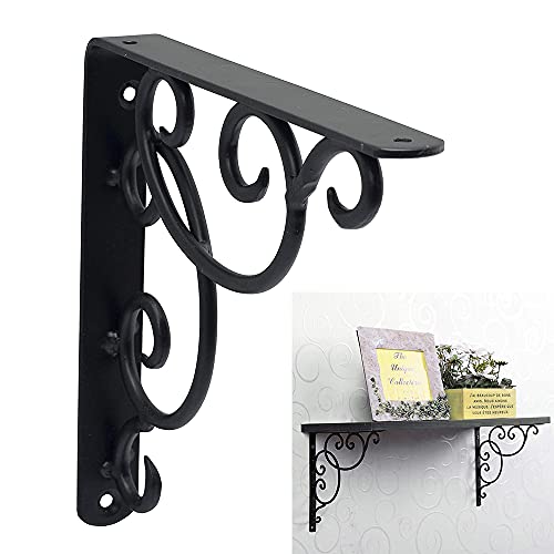 Staffe Decorative per Mensole da Parete, 2 Pezzi Nero Staffe per Scaffali, Staffe Angolari in Ferro Parete, con Viti, per Libri Mensola Della Cucina Supporto di Vaso di Fiori (Nero)