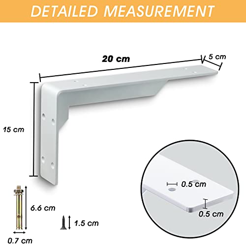 Staffe per Mensole, Staffe Mensole Angolari per Carichi Pesanti 150 kg, Staffe per Mensole Pesanti ad Angolo Travi per Carichi Giganti, Staffa da Parete in Ferro Spesso 5 mm / 2 Pezzi (20cm Bianco)