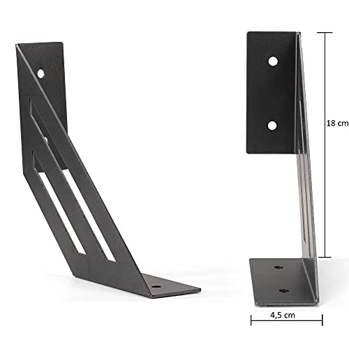 MAD 4 Staffe per Mensole Angolari Nere, Supporti a Muro Resistenti, Reggimensola con Viti e Tasselli di Fissaggio (Big 18 cm, Nero)