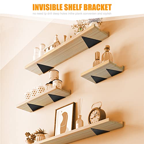 DESIGN INVISIBILE:Nascosti triangolare staffe da muro con viti, non devi preoccuparti che gli accessori in metallo rompano il tuo stile di decorazione domestica, al contrario possono creare l'illusione di scaffali galleggianti, sono belli e pratici