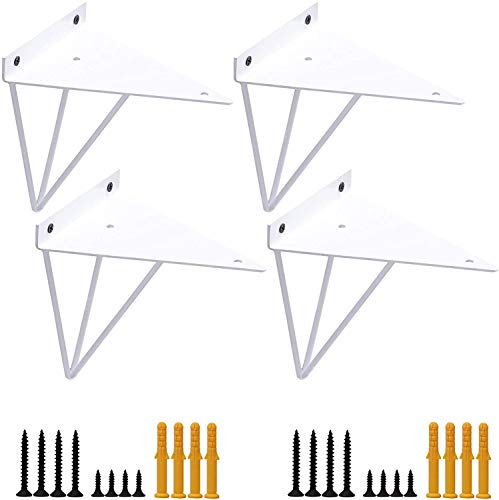 Staffe per Mensole Forma di Triangolare Geometrico, 15.7 x 13 cm Reggimensole Galleggianti Industriali a Scomparsa in Ferro da Muro, Supporto Mensole Nascosti Stile Vintage da Parete, 4 Pezzi, Bianco