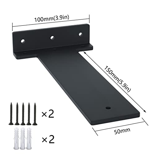 Staffe per Mensole Invisibili Pesanti Supporti per Mensola in Ferro Industriale Spessi 5 mm Carica 100 kg Reggimensola Nascoste a Parete, Nera, 2 Pezzi (150mm/5.9in)