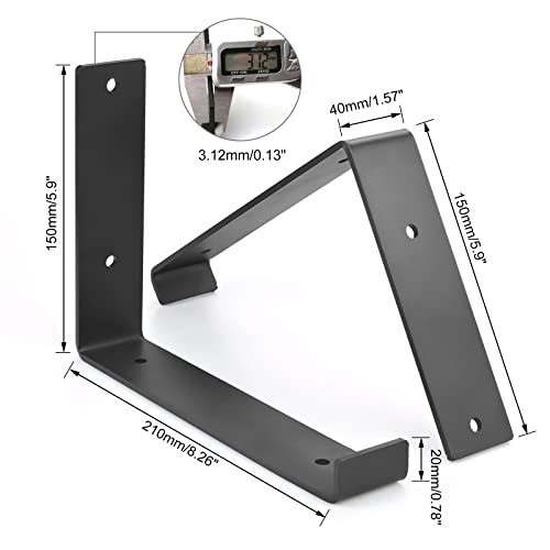 Staffe per mensole resistenti, 4 staffe nere per mensole a L, montaggio a parete, per mensole galleggianti, staffa angolare ad angolo retto a forma di L, con vite e tasselli coordinati, 20,3 cm
